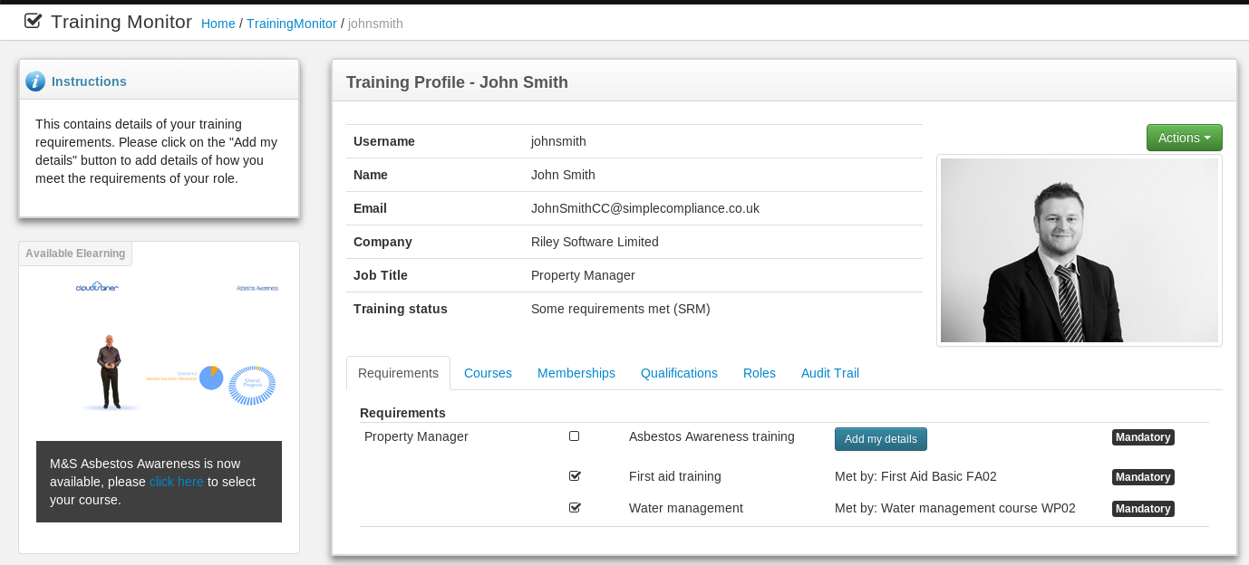 The training module of Simple Compliance links with other modules such as Asbestos, and Permits to Work, which enables you to ensure that the people you select to perform specific tasks, or those who apply for Permits, are always fully compliant.